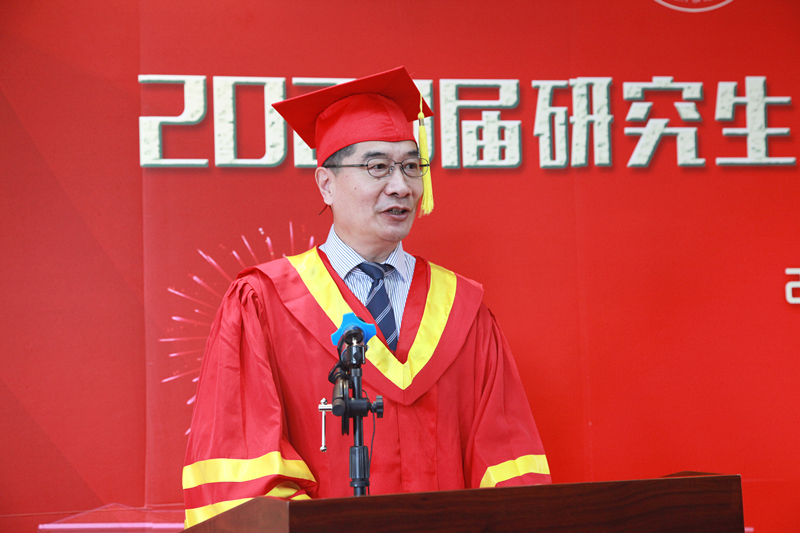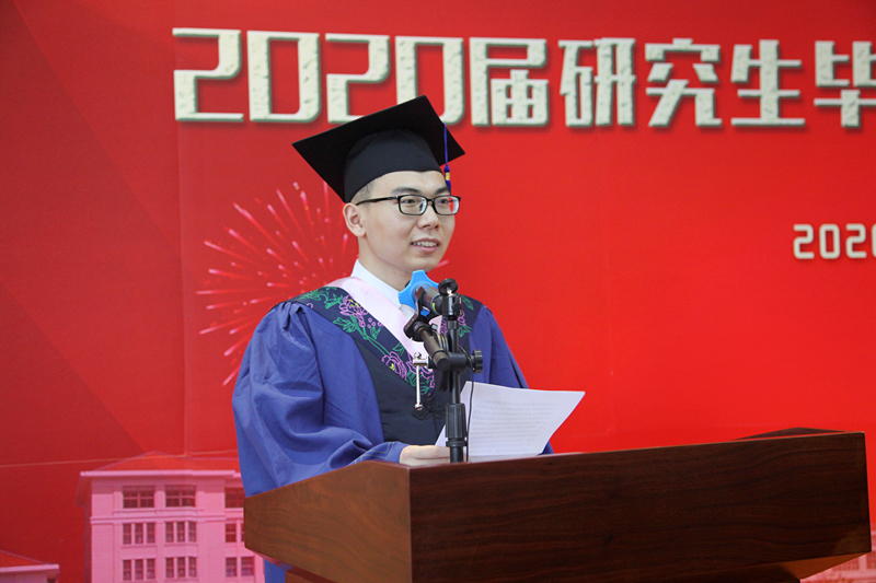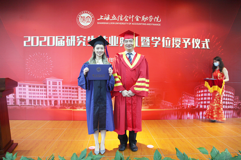 Li Shiping extended his warm congratulations to the 2020 postgraduate students, and expressed his high respect and heartfelt thanks to the supportive parents and the supervisors. He praised the dedication and persistence of the postgraduates, and their actions in practicing the responsibilities and duties in the era. He welcomed the postgraduates to re-visit SLU to take graduation photos after the epidemic. On the occasion of parting, he put forward three expectations for the graduates. First, stay true to the mission, be firm with ideals and beliefs, and build patriotic feelings. He hopes that the students will stick to the mission of the times with their original aspirations for the public, the Party and the people, consciously integrate their future and destiny with the country, nation and society, infuse their patriotic feelings and aspirations of serving the country into the great cause of the reform and development of the motherland and into the great struggle of the people to create history, and contribute wisdom and power to the realization of the Chinese Dream “the great rejuvenation of the Chinese nation”. Second, adhere to a strict moral code, make innovations, uphold the spirit of SLU motto, and open up the realm of life. He encouraged the students to transform the SLU motto of “Lixin” (Integrity) and the SLU spirits of “Honesty, Moral Integrity and Humanistic Pragmatism” into their professional ethics. In the growing years, the students should hold the bottom line, defend their conscience, and brighten the “gold lettered signboard” of integrity with practical actions. Third, be determined to work hard, take on the responsibilities, and make contributions to the great era. After that, Li Shiping awarded a master’s degree to every postgraduate student on the spot.