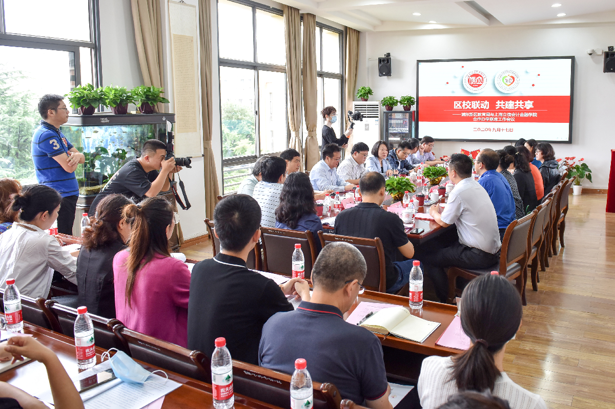 On the morning of September 17, Pudong New Area Education Bureau and SLU’s Joint Work Meeting on Cooperative Program themed District-School Cooperation, Co-building and Sharing was held at Zhengda Campus of Shanghai Lixin University of Accounting and Finance Affiliated School . Secretary of the Party Committee of the Pudong New Area Education Work & Director of the Pudong New Area Education Bureau Zhu Huihua, Deputy Secretary Mao Lixiong, Deputy Director Chen Bin, Vice Chair of the University Council of SLU Wen Xuancai, SLU Affiliated School’s President Zhang Yushu and Party Branch Secretary Li Jie attended the meeting. Wang Junhua, Vice Chair of the University Council and Vice President of SLU presided over the meeting. Also attending the meeting were the heads of the Pudong New Area Education Bureau, relevant departments of SLU, Shanghai Echo Financial Training & Consulting and all the administrative cadres ofSLU Affiliated School.