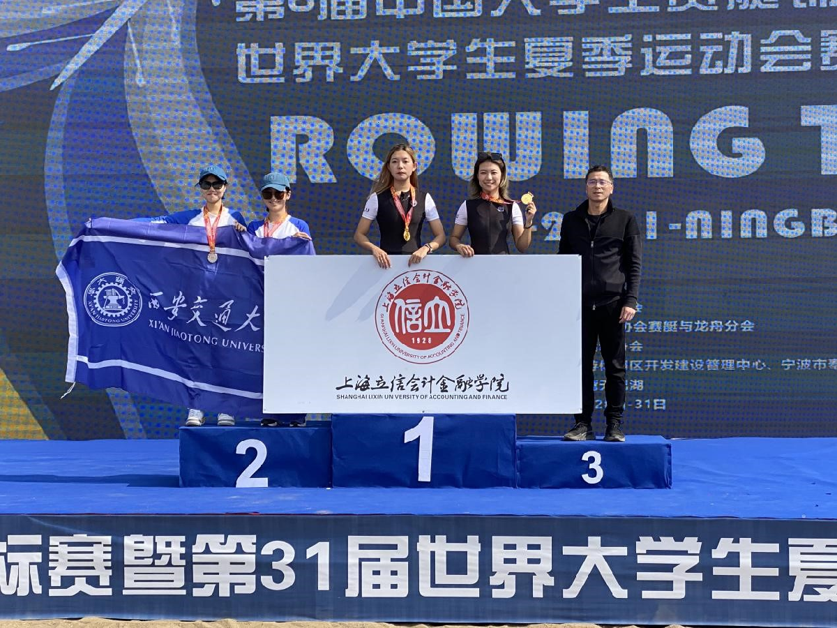 The 6th China University Rowing Championship and the 31st World University Summer Games Rowing Trials were held by the Tianfei Lake in Fenghua District of Ningbo from October 29th to 31st. The rowing team of Shanghai Lixin University of Accounting and Finance (SLU) sent 13 athletes for the competition, and took home medals under the guidance of SLU coaches He Yi and Zhou Hang, including the gold medal of the lightweight women’s double sculls, the gold medal of the lightweight men’s double sculls, the bronze medal of the mixed quadruple sculls, the bronze medal of the men’s four and the bronze medal of the men’s eight with coxswain. This is the first time that our rowing team has won the championship since it was established in 2017.